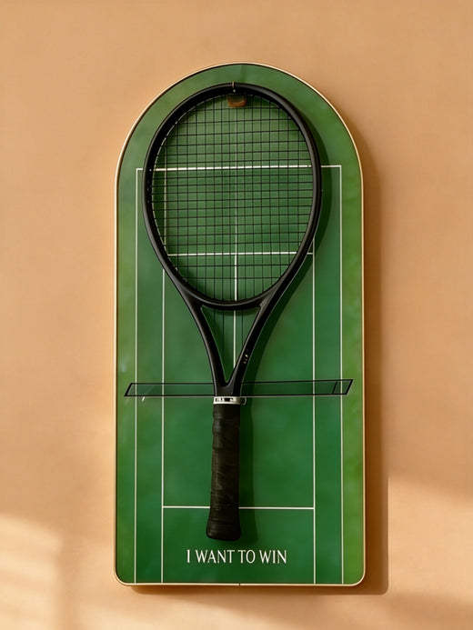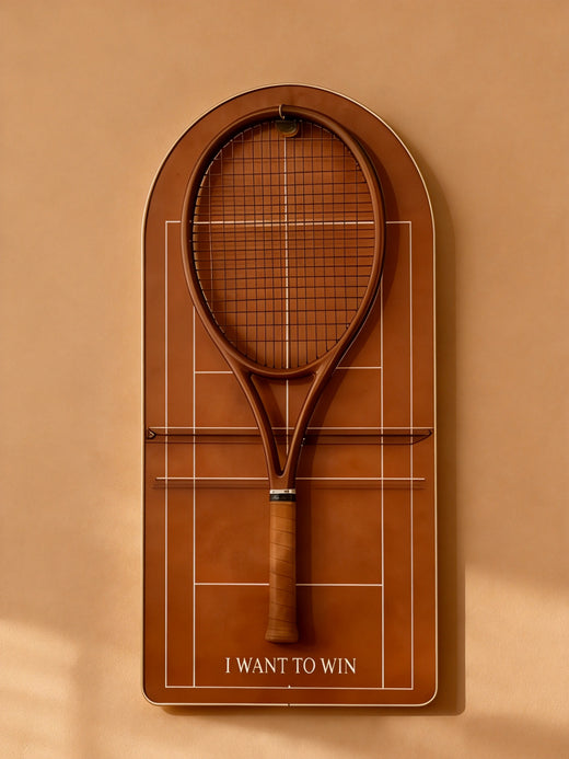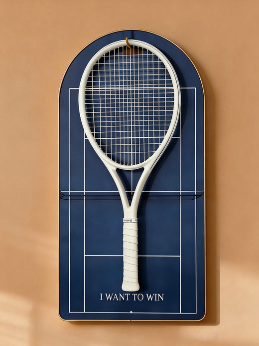 Designed to elevate your space, this arched tennis racket display transforms your equipment into a refined design piece—where sport, passion, and interior aesthetics meet.