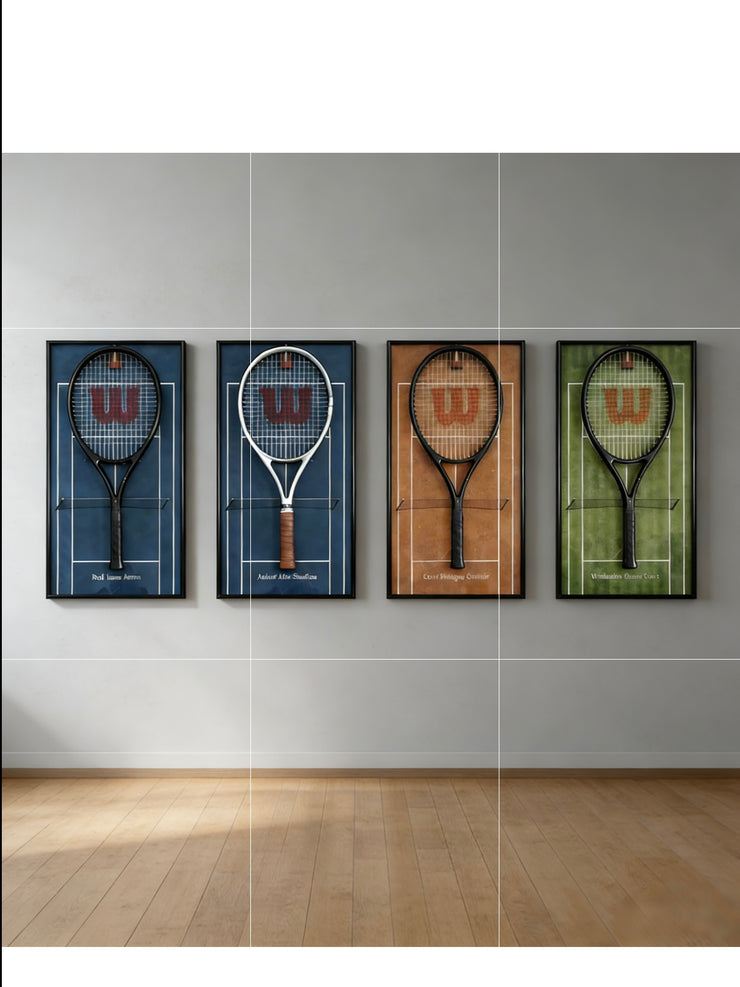This four-piece tennis frame set features sleek, balanced frames designed to perfectly showcase your rackets. Each piece adds a vibrant, stylish touch to your wall, making it ideal for home gyms, studios, or modern living areas.